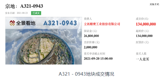 立讯精密在深圳的另一宗土地成功拿下。